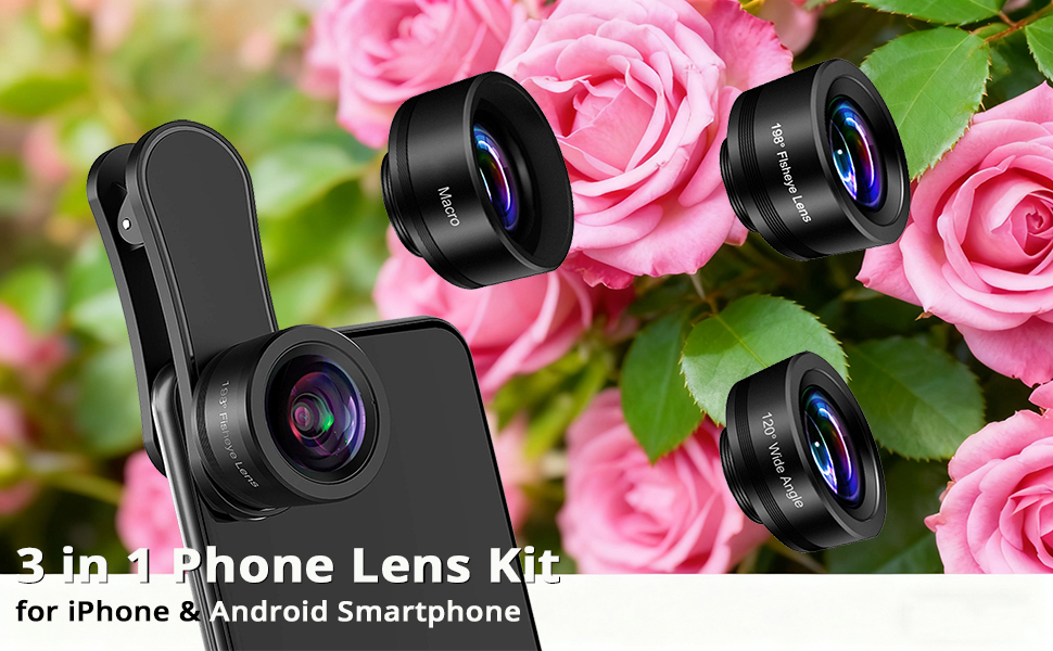| Style | 120° Wide Angle Lens, 20X Macro Lens and 198° Fisheye Lens |