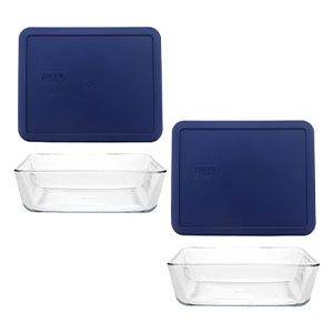 This 2-pack of Pyrex 11-cup glass dishes with BPA-free dark blue lids offers versatile, durable food storage solutions. Designed for perfect compatibility, these dishwasher-safe, microwave- and freezer-friendly containers keep your meals fresh and your kitchen organized with trusted American craftsmanship.
