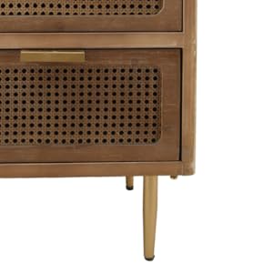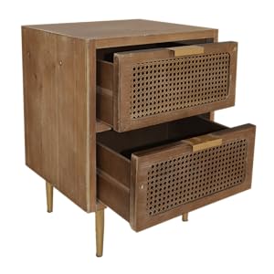 The COZAYH Rustic Farmhouse Nightstand blends engineered wood with a natural distressed finish and distinctive cane mesh drawer fronts, offering two spacious drawers for practical storage. Designed for easy assembly and compact enough for modern bedrooms, it supports up to 45 lbs and complements a range of woven-inspired farmhouse furniture.