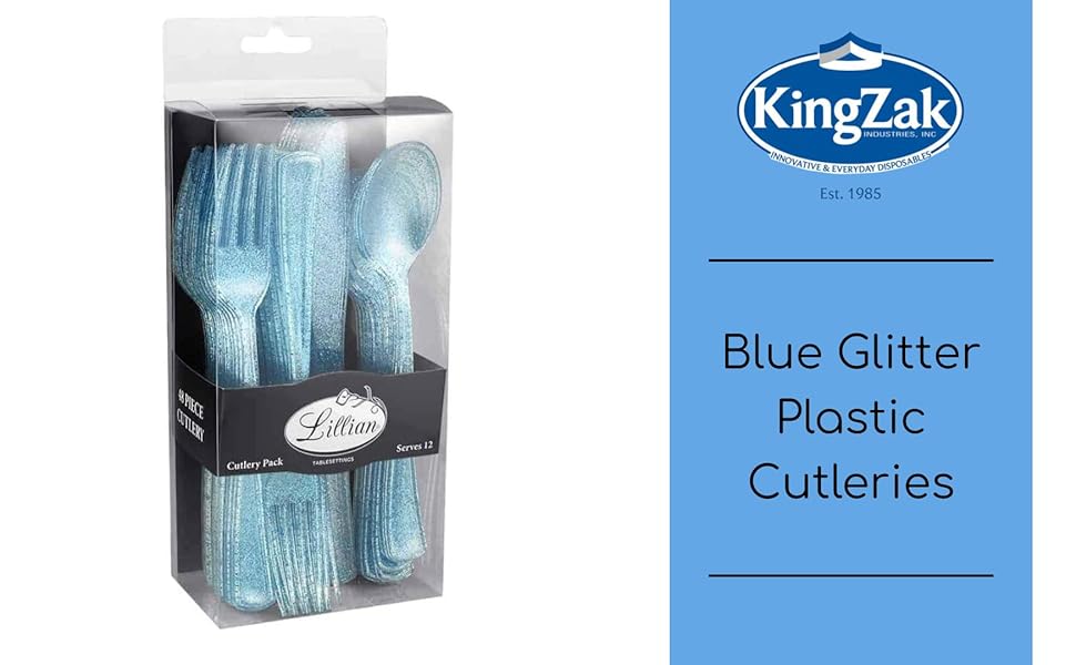 Premium Blue Glitter Plastic Cutlery Set Pack Of 48 Disposable | Desertcart Finland