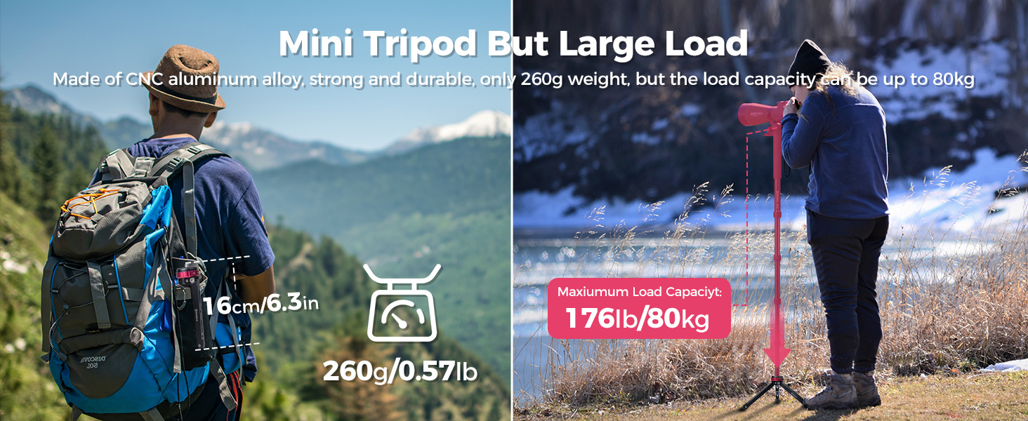 Moman Tabletop Tripod for DSLR Camera with 1/4 and 3/8 Screw Mount and Function Leg Design Max Payload of 176 Lb CNC Aluminum Minipod