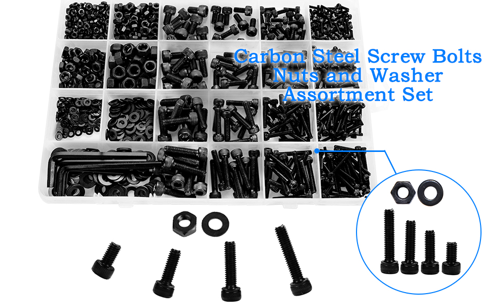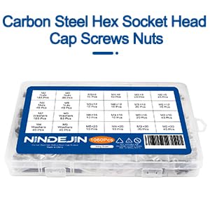 NINDEJIN 880Pcs M2 M3 M4 M5 Stainless Steel Precise Metric Hex Socket Head Cap Machine Screws,Round Flat Socket Bolts and Nuts Set and Washers Assortment Kit +Wrench Hex Round black
