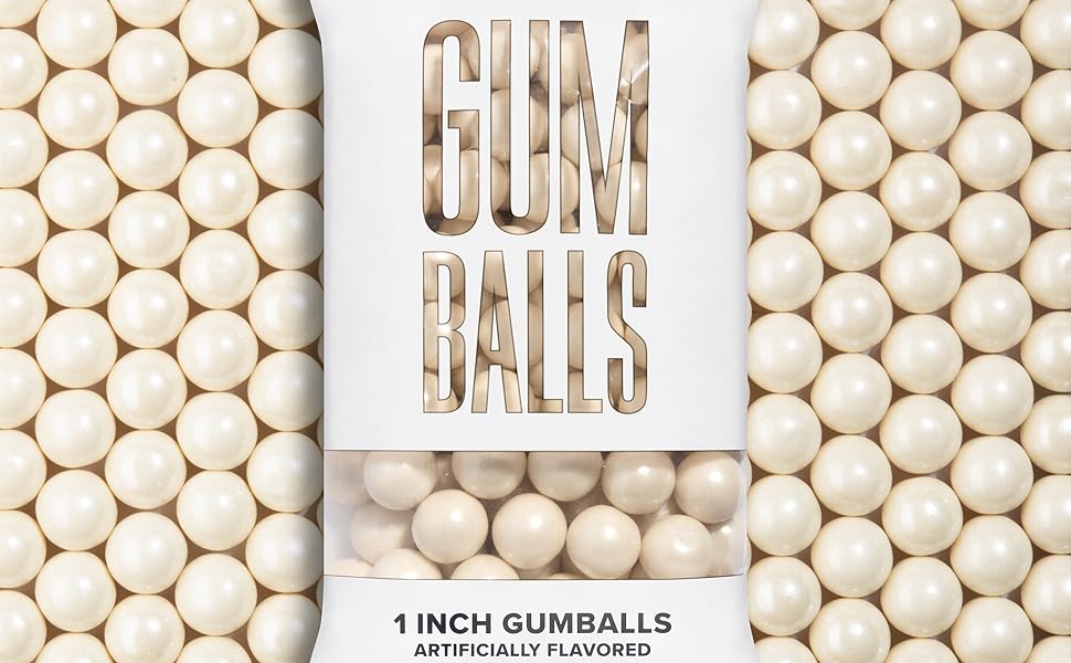 The Candy Envy Shimmer White Gumballs come in a 2lb bag, featuring approximately 113 gumballs per bag. These 1-inch gumballs are Tutti Frutti flavored with floral and lavender notes, are Kosher certified, and proudly made in North America, ensuring a quality treat without any branding.