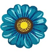 The MeMoreCool Sunflower Rug is a 25" handwoven acrylic area rug featuring a modern floral design in vibrant blue. Its non-slip backing and rigid construction trap dirt and moisture, making it ideal for kitchens, bathrooms, and living rooms. Lightweight and easy to clean, this durable rug combines artisanal quality with practical functionality for stylish, safe living spaces.