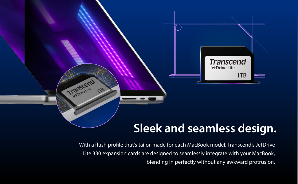 The Transcend JetDrive Lite 330 is a 512GB solid-state expansion card designed for MacBook Pro models from 2012 to 2023. Featuring high-speed USB 3.0 connectivity, it delivers up to 95 MB/s read and write speeds, providing a reliable and durable storage upgrade with easy installation and a compact, portable design.