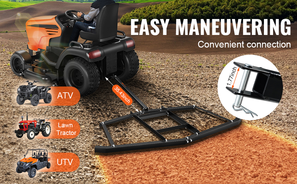 VEVOR 66’’ Width, Tow Behind Drag 35’’ Length, 4’’ Height, Harrow with 2 Adjustable Bars, Heavy Duty Steel, Driveway Grader for ATV, UTV, Garden Lawn Tractors, Black