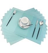 these are wonderful placemats. The color is just right to go with my turquoise theme and the size is just right on my table. The main reason I chose them is because they are so easy to clean and they always look nice . Would definitely get them again!