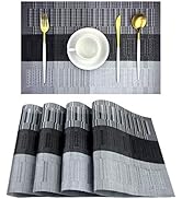 The PIGCHCY Place Mats set includes six brown woven vinyl mats measuring 18" x 12", crafted from eco-friendly PVC. These mats offer heat resistance up to 185°F, a non-slip surface, and easy wipe-clean functionality. Designed for versatile indoor and outdoor use, they combine durability with a stylish woven texture that enhances any table setting while protecting surfaces from heat, spills, and scratches.