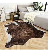 The Easycozy Faux Cowhide Rug measures a generous 4.7 by 5.2 feet, crafted from durable faux deerskin and non-woven felt with a 5mm thick TPE elastic backing. Designed for modern living spaces, it features a natural cow print pattern, non-slip moisture-resistant bottom, and self-smoothing crease technology, making it a stylish, comfortable, and low-maintenance addition to bedrooms, living rooms, or home offices.