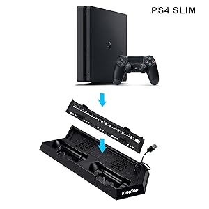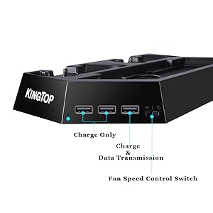 The KINGTOP PS4 Stand combines a high-efficiency cooling fan with a sleek vertical design to prevent console overheating. It features dual charging ports for simultaneous controller charging and a built-in USB hub for fast data transfer and device charging. Compatible with PS4, PS4 Pro, and PS4 Slim, this space-saving stand enhances your gaming setup with superior functionality and style.