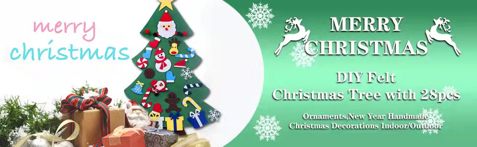Wastnhuk Felt Christmas Tree for Kids Wall, DIY Felt Christmas Tree for Toddlers Set with 28 Ornaments, Kid Christmas Decorations for Door Classroom Party