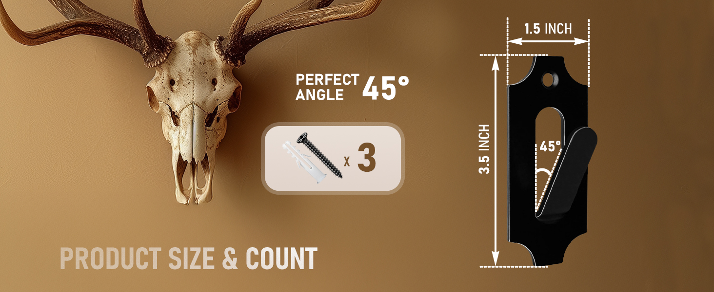 The Mount Skull Hanger is a robust and stylish solution for displaying your prized game skulls. Made from high-quality stainless steel, it can hold up to 40 pounds and is designed for easy installation. Suitable for both indoor and outdoor use, this 3-pack of hangers is perfect for showcasing deer, antelope, and other small game animals while adding a unique decorative flair to your space.