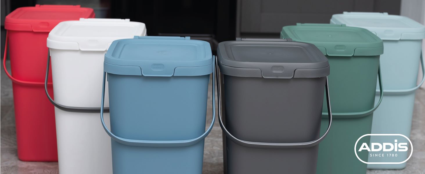 The Addis 519354 Kitchen Recycling & General Storage Bin offers an 18-litre capacity with a secure clip lock lid and ergonomic handle, designed for versatile use from food waste to utility storage. Made in the UK with BPA-free, dishwasher-safe plastic, it features a stackable design to optimize space and comes with a 10-year guarantee, blending durability with modern kitchen convenience.