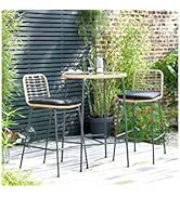 The BRISHI Outdoor Bar Set includes 2 chairs and 1 table crafted from durable HDPE and UV-protected rattan, featuring a powder-coated frame for weather resistance. Compact and lightweight, it’s designed for both indoor and outdoor use, offering easy maintenance and eco-friendly materials ideal for stylish balcony or patio relaxation.