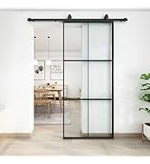 The JUBEST 36in x 84in Glass Sliding Barn Door features a modern 3-panel black aluminum frame with clear tempered glass, designed for easy DIY installation without hardware. Its space-saving sliding design brightens interiors by allowing natural light flow, making it perfect for kitchens, living rooms, or laundry areas seeking a sleek, contemporary upgrade.