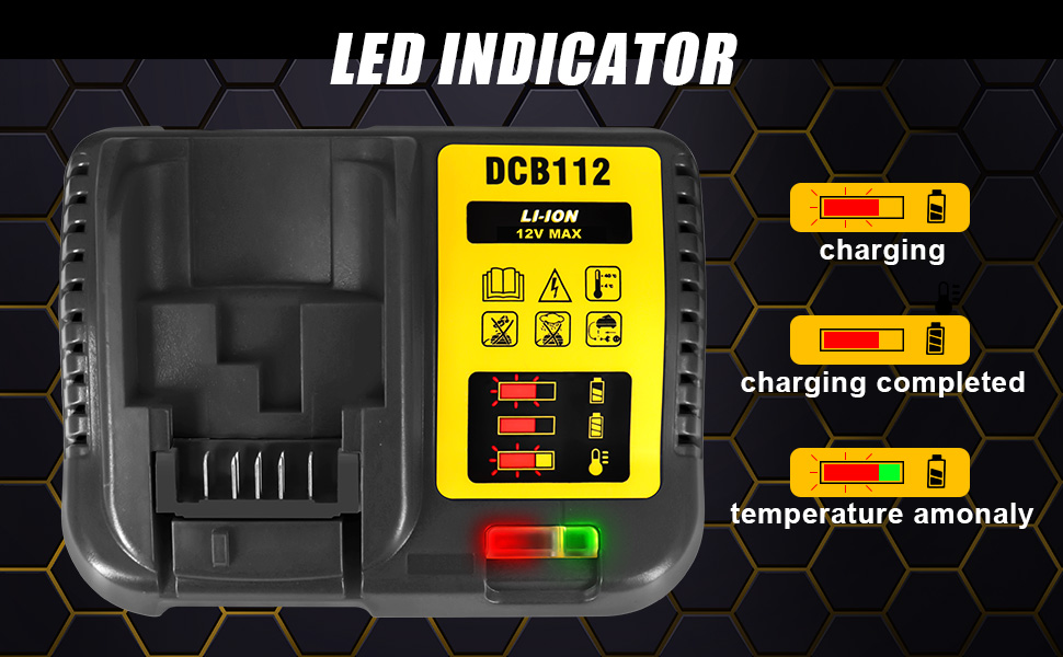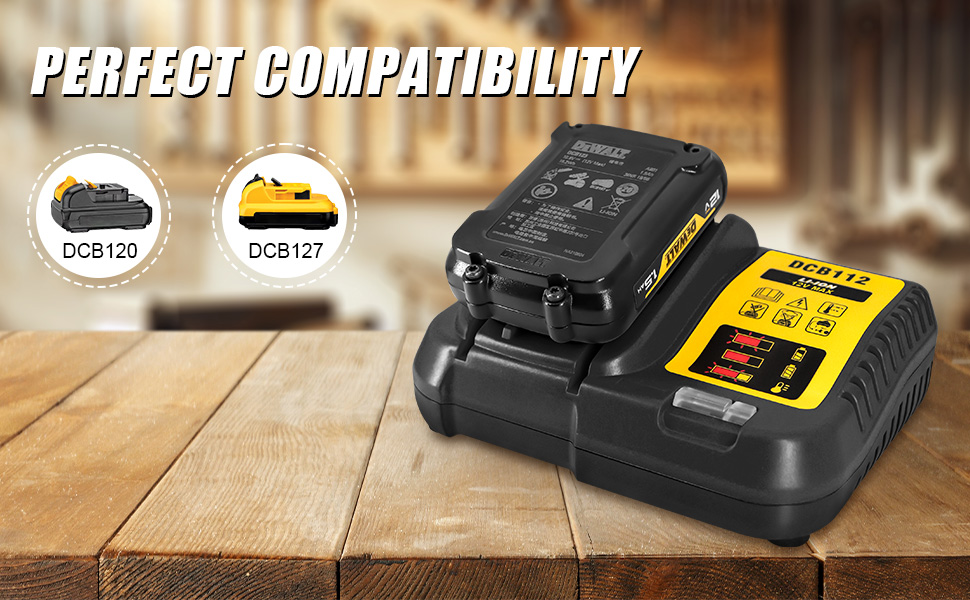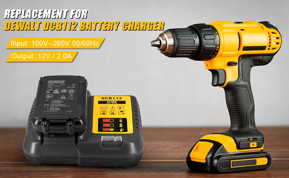 The DCB112 is a high-efficiency replacement charger designed for Dewalt 12V MAX Lithium-Ion batteries. It delivers a rapid 1.5-hour charge, features an integrated cooling fan to maintain optimal battery temperature, and incorporates multiple safety protections compliant with FCC, RoHS, and CE standards. Compatible with a broad range of Dewalt batteries, it ensures reliable, safe, and fast charging backed by a 1-year warranty and 24/7 customer support.
