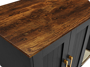 Dwanton Litter Box Enclosure, Cat Litter Box Furniture Hidden, with Scratching Mat, Wooden Cat Washroom Indoor, 31.5" L x 19.7" W x 21.7" H, Black and Rustic Brown