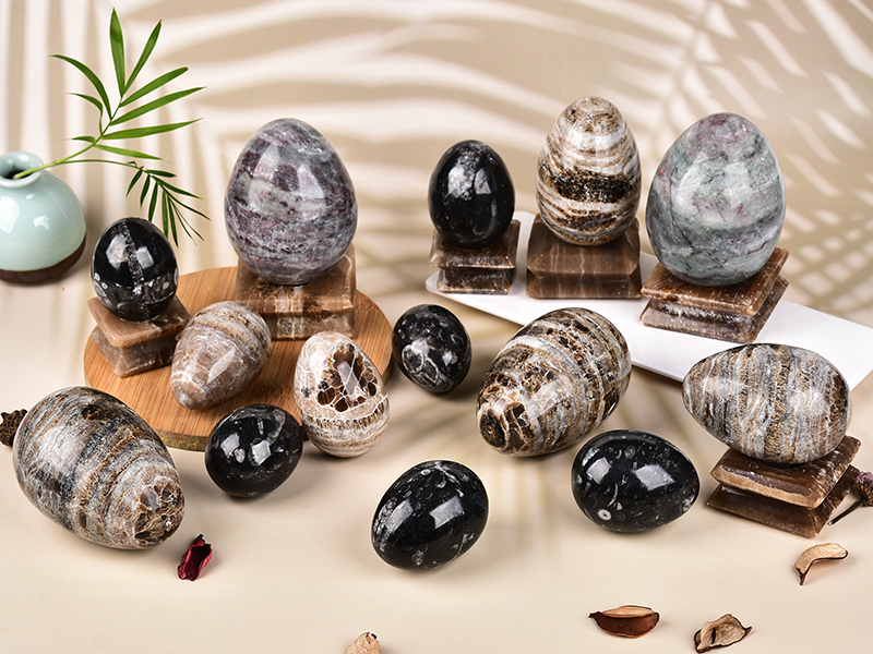 Amoystone Orthoceras Stone Egg Black With Natural Stone Base Healing | Desertcart Finland