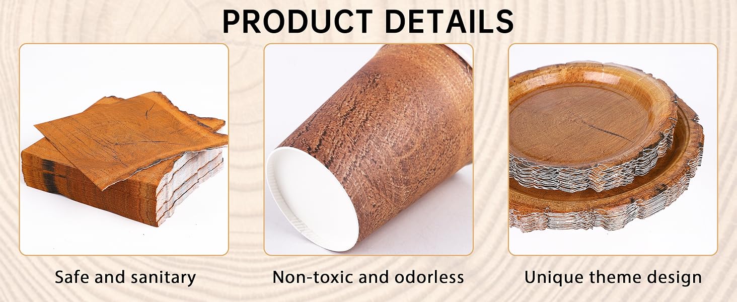 400 Pieces Wood Grain Slice Disposable Party Tableware Sets Rustic | Desertcart Finland