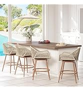 This set of four 30-inch outdoor counter height bar stools combines weather-resistant braided rope and rust-proof aluminum legs for lasting durability. Featuring ergonomic backrests and footrests, handwoven bohemian rattan craftsmanship, and removable soft cushions, these stools offer stylish comfort ideal for patios, gardens, pools, or kitchens. Designed to fit standard counter heights, they bring a modern yet natural aesthetic to any space.