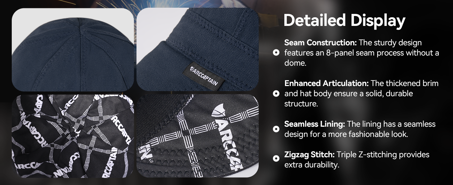 The ARCCAPTAIN Reversible Welding Cap is a premium 8-panel protective hat made from 260g Martin Cloth with a 100% cotton heat-resistant lining. Nearly 2.5 times thicker than typical welding beanies, it offers superior durability and comfort. Its reversible design enhances breathability, while the sweat-absorbing brim ensures a cool, focused experience. Available in 10 sizes, this cap is perfect for welders and professionals working in high-temperature environments.