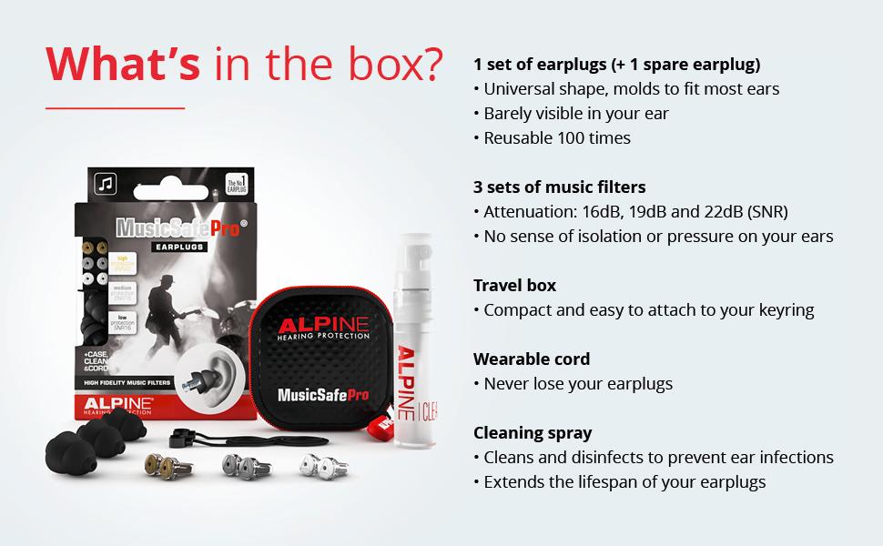 Alpine MusicSafe Pro® earplugs deliver professional-grade hearing protection with up to 22 dB noise reduction, using dual interchangeable filters to maintain sound clarity. Designed and crafted in the Netherlands, these hypoallergenic earplugs are lightweight, certified, and perfect for musicians and concertgoers who refuse to compromise on audio quality or ear safety.