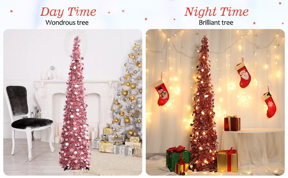 The MACTING 5ft Pop-up Christmas Tinsel Tree in vibrant fuchsia features a lightweight metal and plastic build with a stable tripod stand. Its collapsible design allows for quick assembly and compact storage, making it perfect for apartments or coastal-themed holiday decor. This reusable, glittery tree brings festive spirit without sacrificing space.