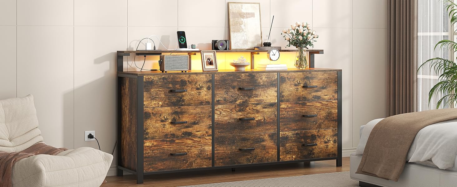 63 Rustic Brown Dresser For Bedroom 9 Drawer Dresser Power | Desertcart Finland
